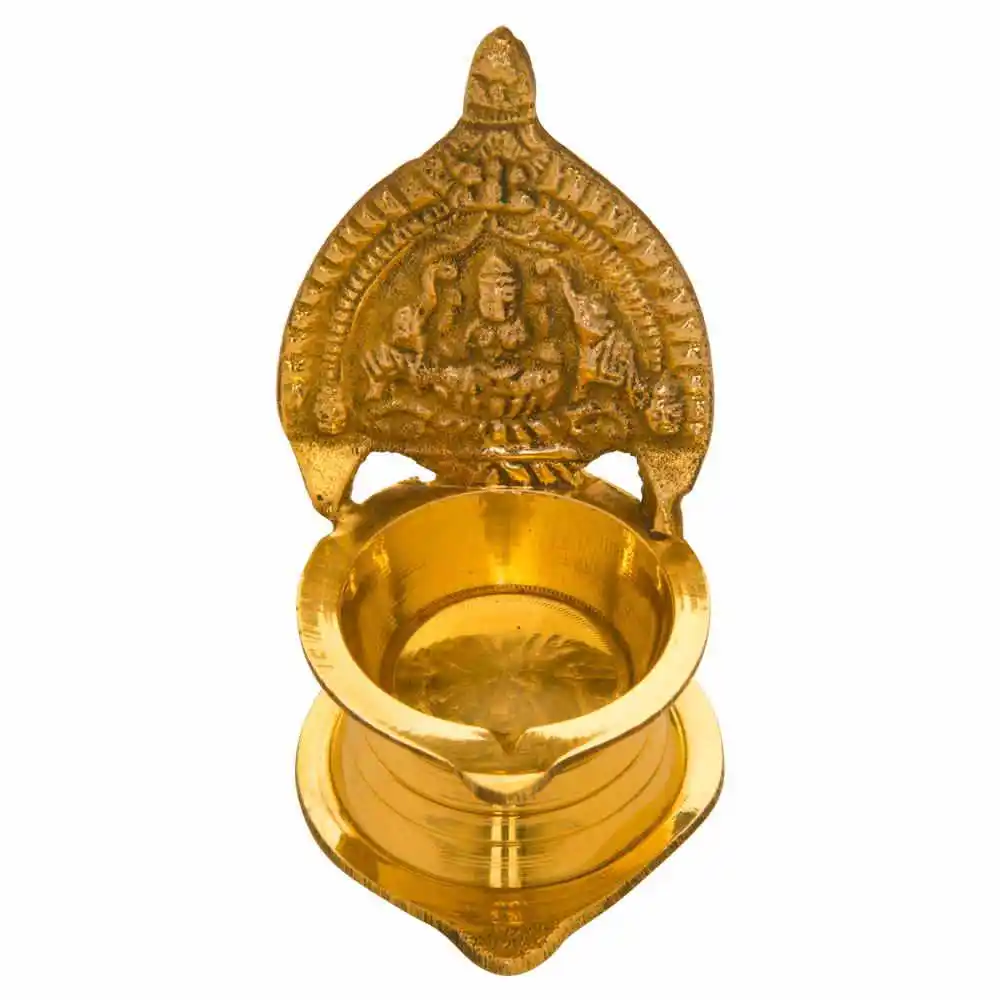 The lamp features an intricate design inspired by traditional South Indian artistry, reflecting grace and cultural heritage.
